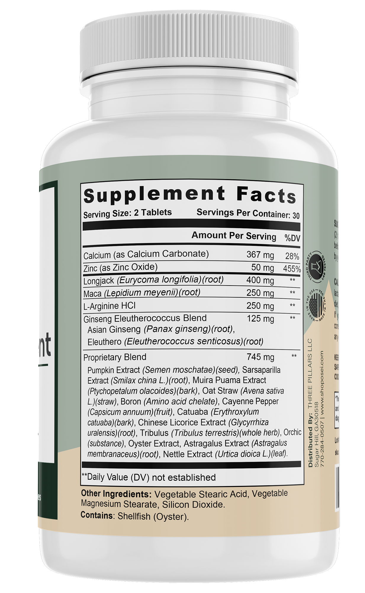 Pumpkin Extract (Semen moschatae) (seed), Sarsaparilla Extract (Smilax china L.) (root), Muira Puama Extract (Ptychopetalum olacoides)(bark), Oat Straw (Avena sativa L.)(straw), Boron (Amino acid chelate), Cayenne Pepper (Capsicum annuum) (fruit), Catuaba (Erythroxylum catuaba) (bark),Chinese Licorice Extract (Glycyrrhiza uralensis) (root), Tribulus (Tribulus terrestris) (whole herb), Orchic (substance), Oyster Extract, Astragalus Extract (Astragalus membranaceus)(root), Nettle Extract (Urtica dioica L.) (leaf)  |
